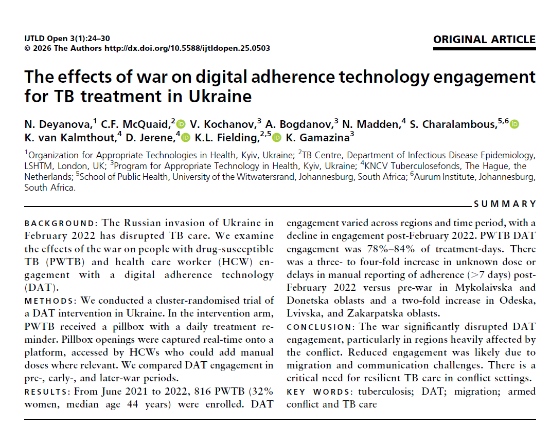Effectiveness of digital adherence technologies in improving tuberculosis treatment outcomes in four countries: a pragmatic cluster randomised trial protocolMonday, August 26, 2024